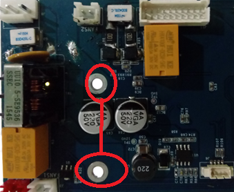 以上實驗做完發(fā)現(xiàn)測試正常未損壞。查看電路板分析,在整機中電源板的螺孔都是固定在整機結(jié)構(gòu)上的,整機結(jié)構(gòu)是金屬件,所以他們是連在一起的屬性,所以采用導(dǎo)線把兩個螺孔連在在一起,模擬實際地回路。(備注下圖上螺孔為PE地,下螺孔為數(shù)字地)