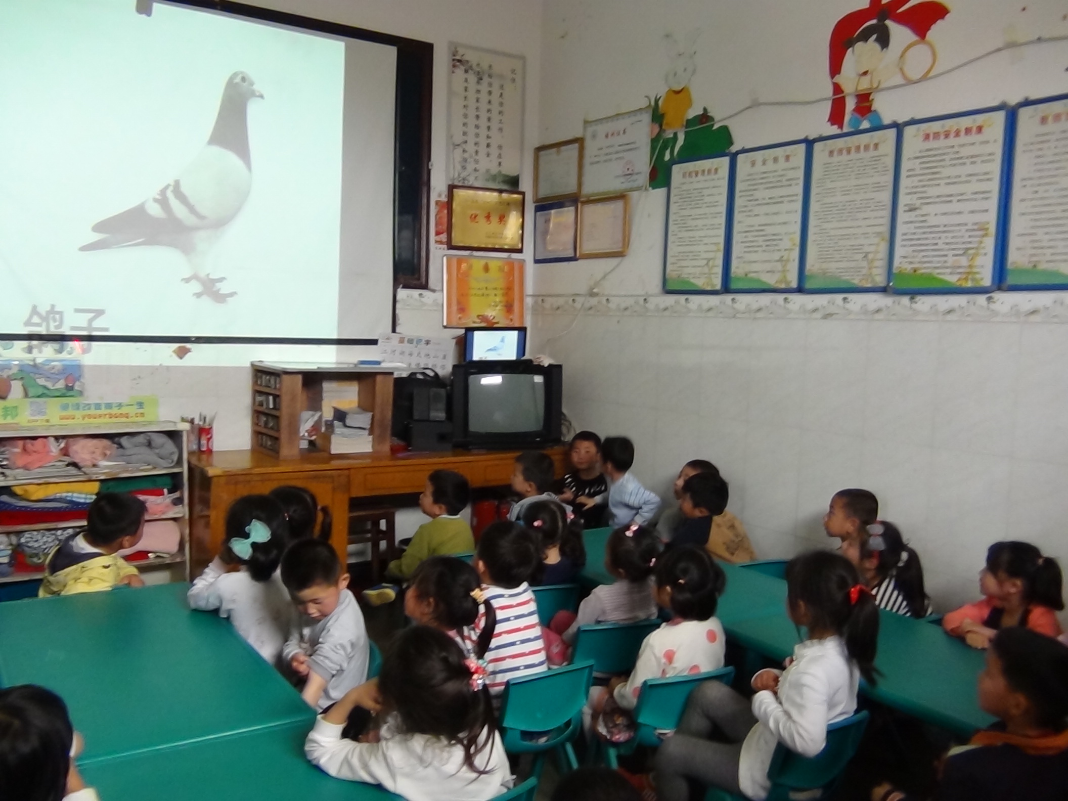 ▲有了筆記本電腦和投影儀,小朋友們的課堂知識更加豐富多彩